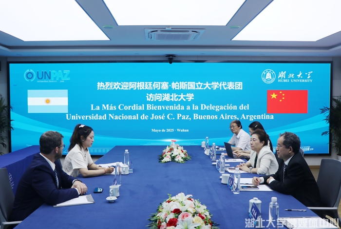 刘建平代表学校向来访客人表示热烈欢迎。他表示,刚刚结束的中国—拉美和加勒比国家共同体论坛第四届部长级会议和正在举行的2025世界数字教育大会,为湖北大学拓展与拉美高校校际合作交流提供了机遇,搭建了良好平台。期待双方在签订的合作协议基础上,开展人才培养、科学研究、文化交流等全方位合作,共同开拓中拉教育合作广阔空间。
