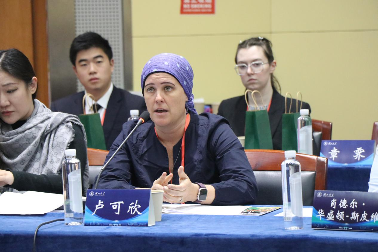 在交流环节中,美方交流团成员卢可欣(Kristen Looney)作了题为《Rural Development》的主题汇报。她结合自身的学习与社会实践经验,分享了对乡村发展的理解与思考。她在发言中提到,美国的部分乡村地区在教育普及、基础设施建设及青年创业等方面的经验,或可为中美两国在乡村振兴领域的交流提供借鉴。她认为,中美青年应成为乡村可持续发展的积极参与者与推动者,通过跨文化交流与合作,为乡村的创新与活力注入新的动力。
