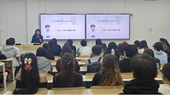 为助力我校国际学子平安、健康地融入在华生活,留学管理办公室于11月4日携手校医院及湖北省第三人民医院(阳逻院区)的专家,在长江新区校区成功举办了一场面向国际学生及其辅导员的“健康与安全”专题讲座,主要聚焦校园医疗与应急救护。