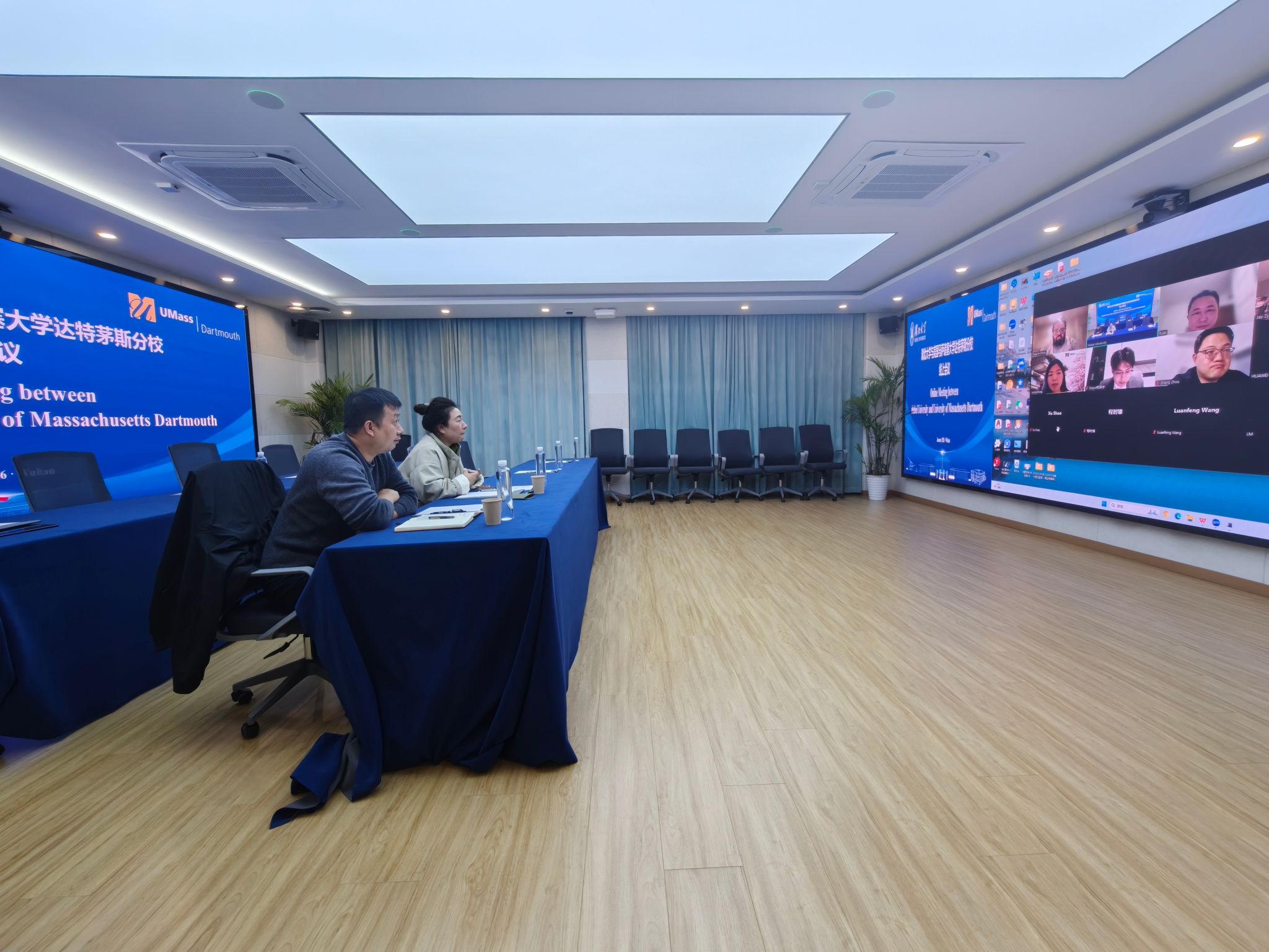 2026年1月15日晚,我校与美国马萨诸塞大学达特茅斯分校开展线上工作会议,洽谈联合教学、学生联合培养等事宜,并在多项内容上达成共识。美方参会人员包括文理学院院长Philip Scher、师资事务与本科教育副教务长Shannon Jenkins、英语与传播学系副院长Jay Zysk、经济学系主任Neal Olitsky、生物学系主任Mark Silby、国际招生负责人Tina Rong等。我校国际交流与合作处、生命科学学院、商学院负责人及教师代表参加。
