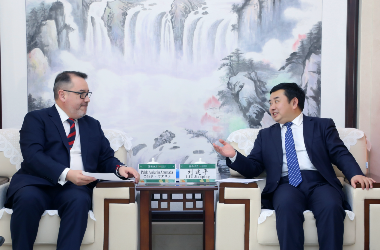 首先,湖北大学校长刘建平会见了智利驻华大使阿里亚兰,代表全校师生热烈欢迎阿里亚兰大使夫妇,并向阿里亚兰大使夫妇介绍了湖北大学近年来在区域与国别研究、国际学生培养、智库建设以及国际交流合作等方面取得的成绩,并表示希望以此次访问为契机,加强与智利高校及研究机构的实质性合作,共同推动中智人文交流与青年互访。
